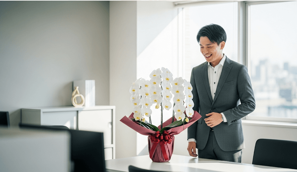オフィスに飾られた胡蝶蘭は、その場を明るく彩るだけでなく、昇進した本人のステータスを高め、会社からの期待の大きさを象徴する役割も果たします。