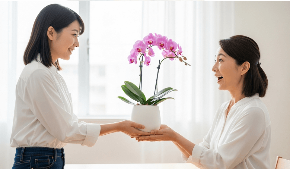 ミディ胡蝶蘭のような比較的手頃な価格帯のものを選んだり、兄弟で協力したりと、工夫次第で学生の皆さんでも実現可能な、最高のプレゼントとなり得ます。