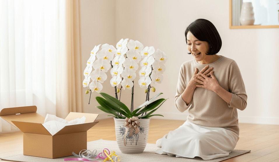 母の日にミステリーツアーが「体験型ギフト」として人気なように、実は胡蝶蘭もまた、非常に優れた「サプライズ体験」を演出できる贈り物として注目されています。