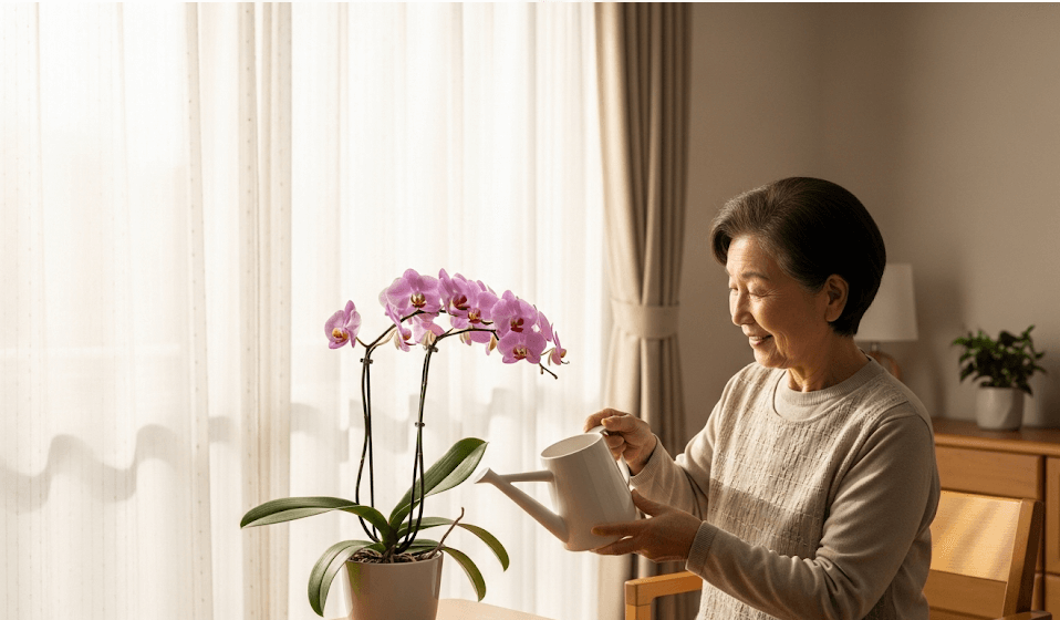 「お世話が大変だと、かえって負担になってしまうかも」という心配は、胡蝶蘭に関してはほとんど不要と言えるでしょう。
