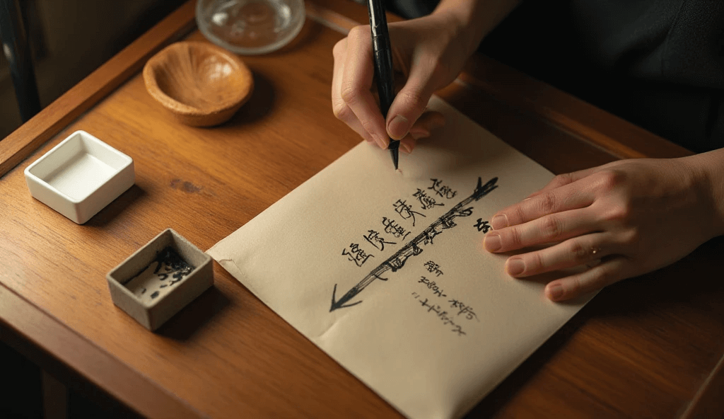 購入後は、筆ペンを使って、心を込めて表書きと中袋を記入します。