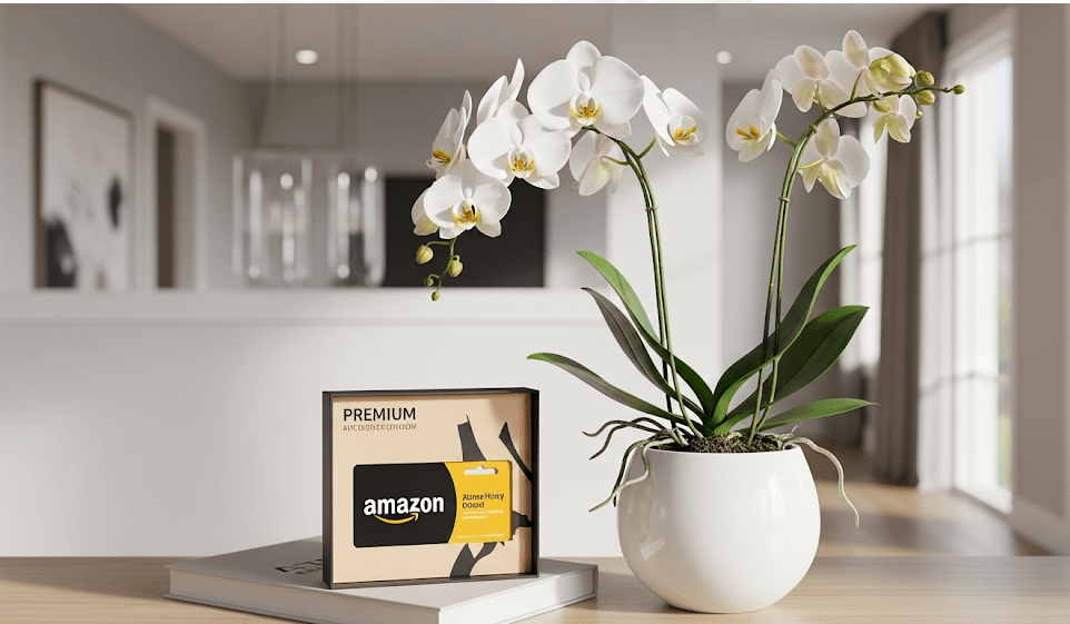 実用性を極めたAmazonギフト券と、お祝いの気持ちと華やかさを象徴する胡蝶蘭。