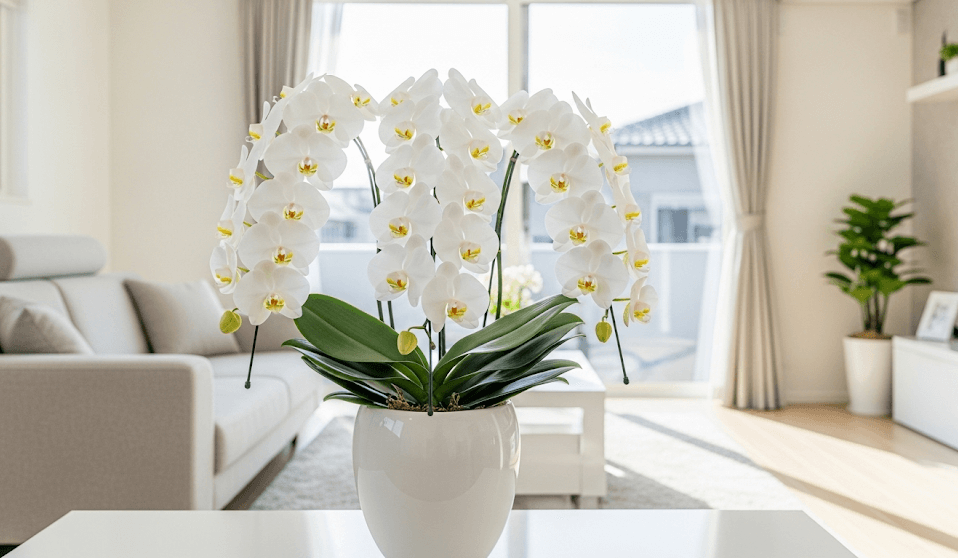 - 3万円台:「大輪胡蝶蘭 3本立ち」の中でも、特に花の数が多く(36輪~40輪程度)、より豪華なものが選べます。リビングなど、家の中心となる場所に飾るのにふさわしい、最も人気の価格帯です。