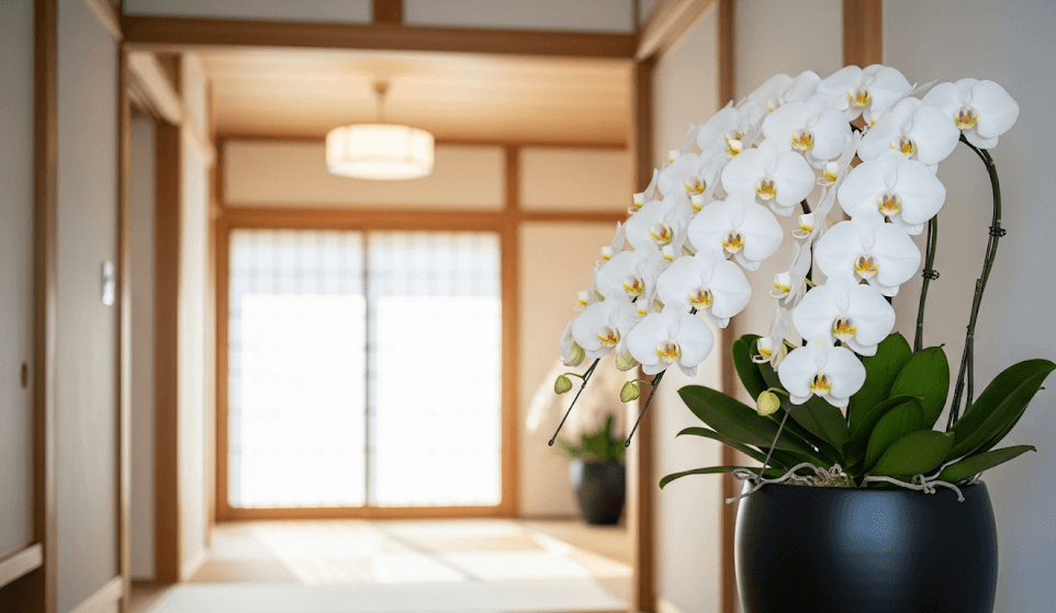 まだ家具が揃っていない殺風景な新居であっても、一鉢の胡蝶蘭があるだけで、その場所がぱっと明るく、生命力に満ちた特別な空間に変わります。